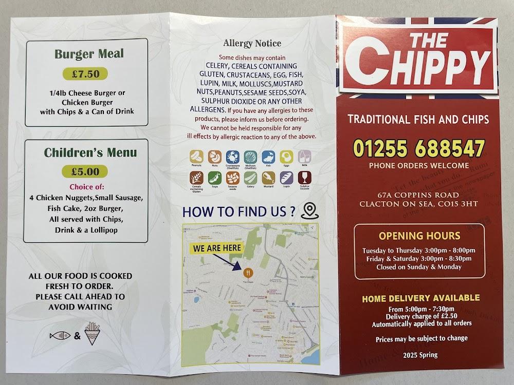 Nestled in Clacton-on-Sea, The Chippy stands as a local treasure known for its top-notch fish and chips. Located conveniently on Coppins Rd, it invites both locals and visitors in for a casual dining experience. The area is renowned for its stunning beaches and friendly community, making The Chippy a go-to spot after a long day of seaside fun.